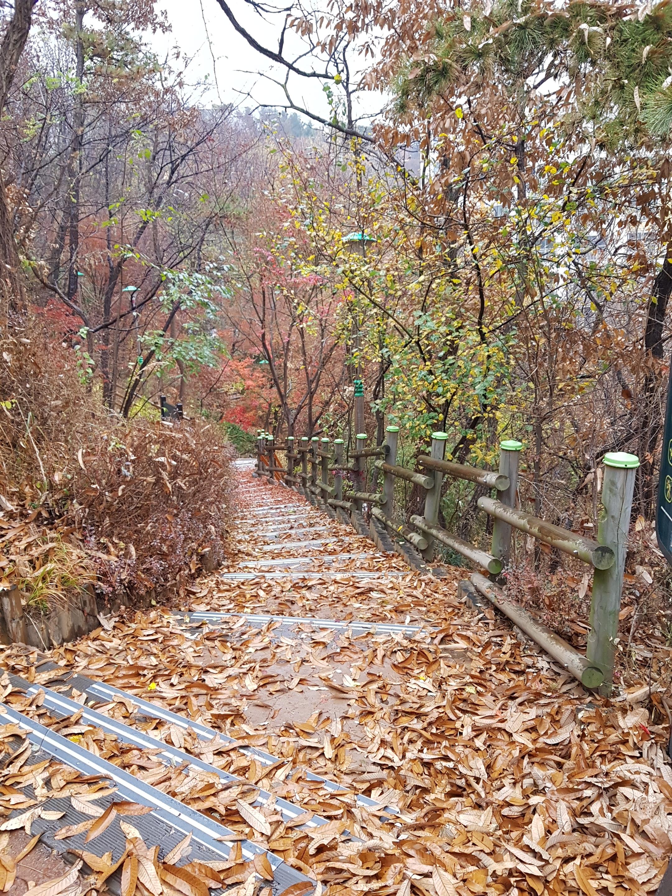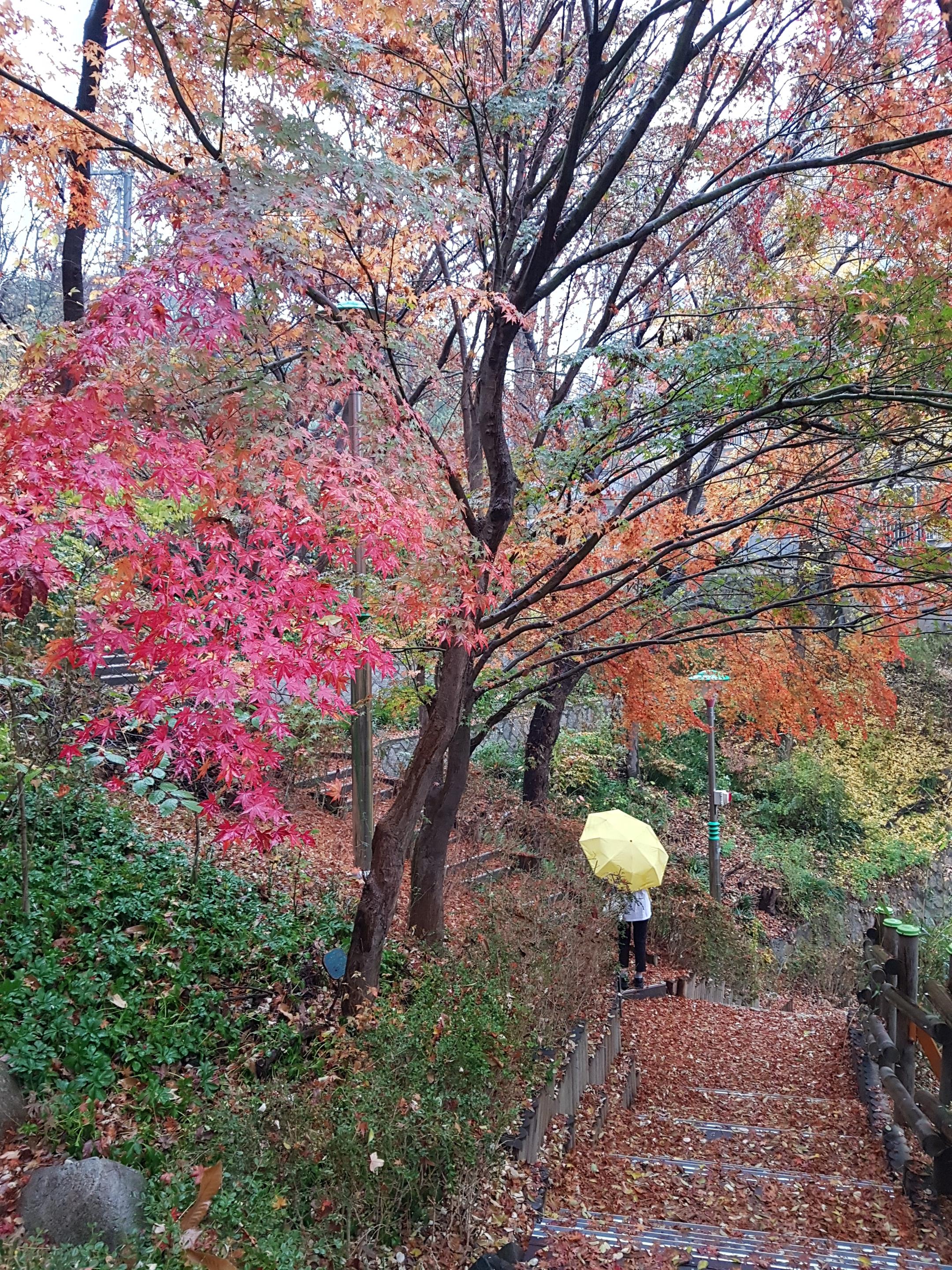 낙엽이 비처럼 내리는 날 오후 단풍이 절정인 와우산을 걷는다